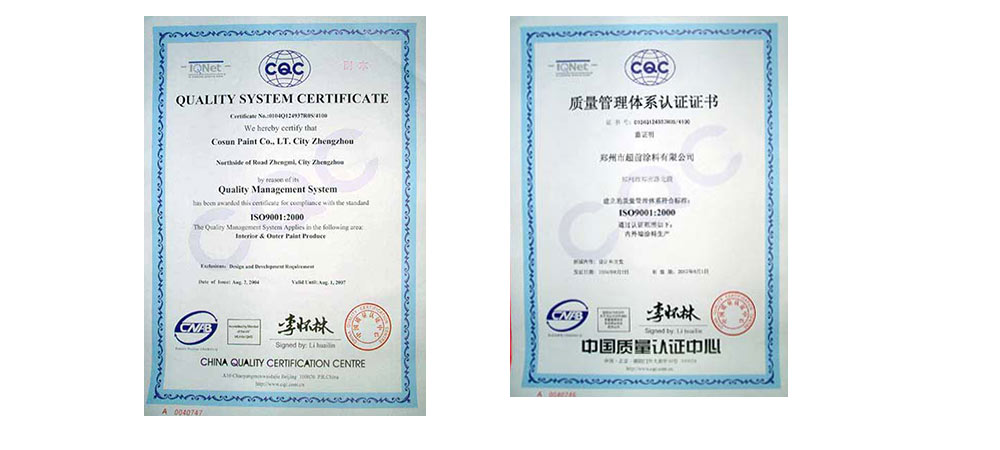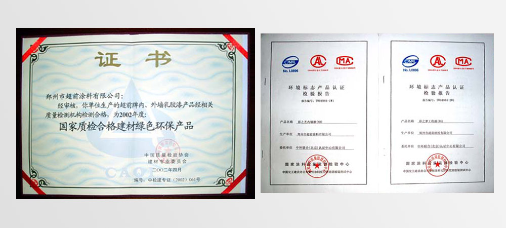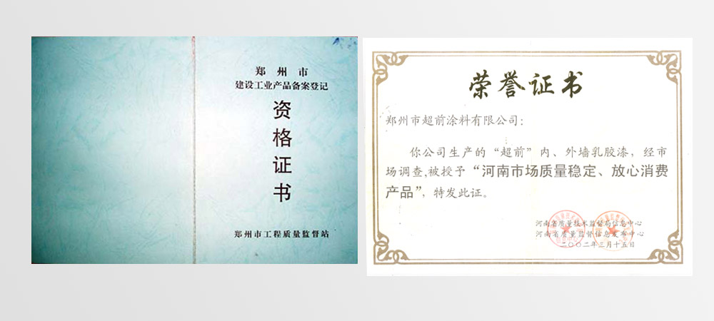 • 2002年評(píng)為“國家質(zhì)檢合格建材綠色環(huán)保產(chǎn)品”、 “河南市場質(zhì)量穩(wěn)定、放心消費(fèi)產(chǎn)品”