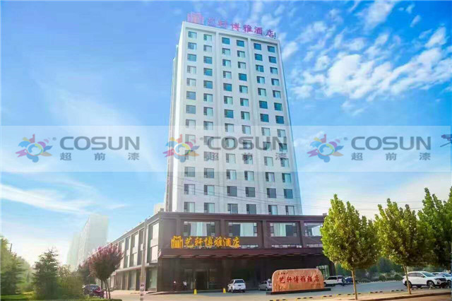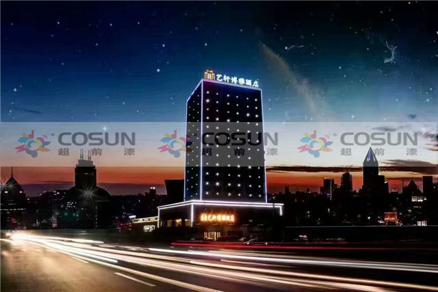 超前涂料 CCTV黃金展位合作伙伴山西臨汾侯馬藝軒酒店工地面積5000平方,超前外墻真石漆,以絕對的質(zhì)量優(yōu)勢,成為該酒店指定的多彩真石漆供應(yīng)商。也是該酒店錦上添花的一次完美合作。